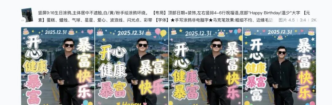 后面我会给大家讲实操方法,找现成的素材改一改,就能做出合格的生日涂鸦图片,完全不用自己从0开始画!